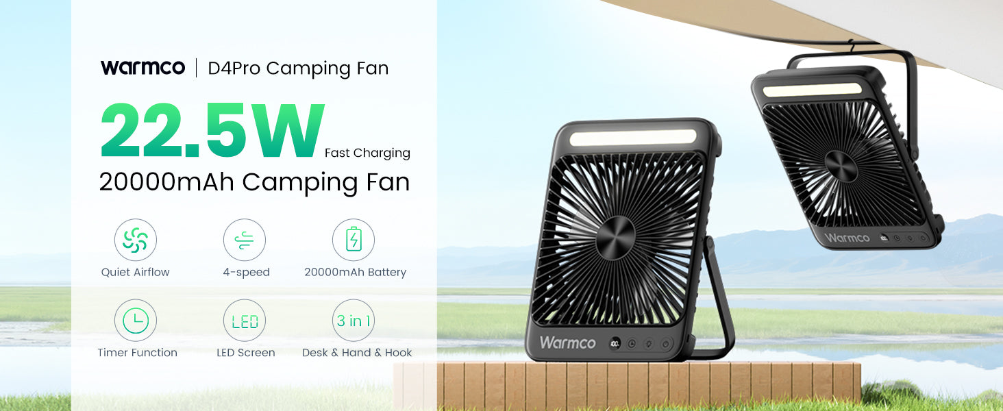 Warmco has introduced new features in the D4 Pro compared to the D4, including a fast charging function and a timer function. With an input power of 18W, the D4 Pro fan only takes 7 hours to fully charge. The output power reaches 22.5W for fast charging. The timer...