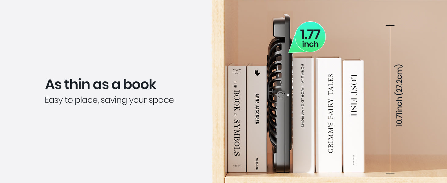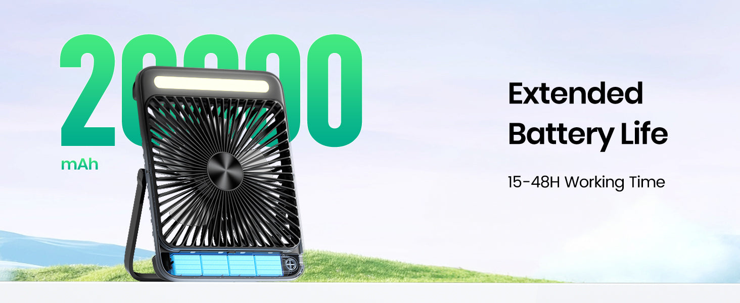 With a thickness of only 4.5 cm and weighing just 0.8 kg, the fan features a foldable stand, allowing for easy positioning and adjustment of airflow where you need it most. It fits easily into backpacks, tents, and other tight spaces. The space-saving design eliminates the bulkiness of traditional camping fans.