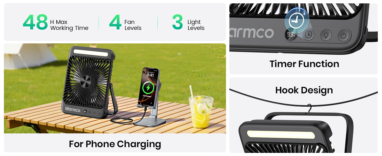 Warmco Camping Desk Fan D4 Pro(20000mAh)