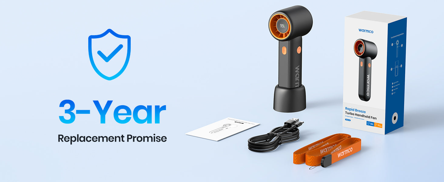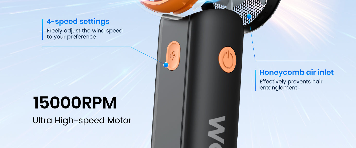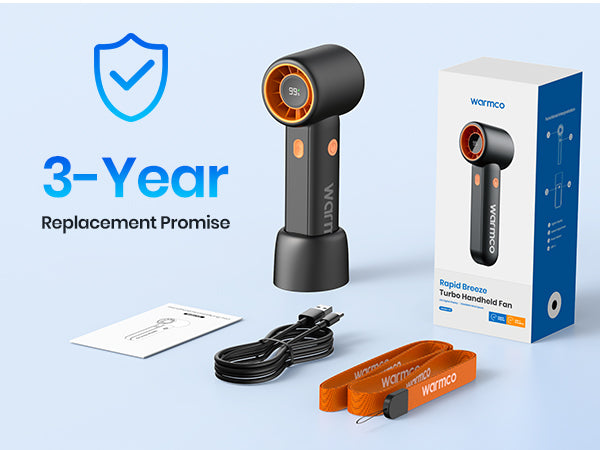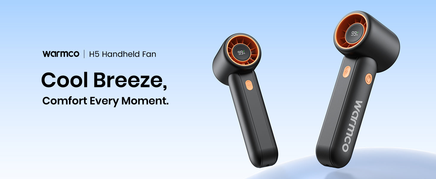 Stay cool anywhere with the Warmco H5 handheld fan — delivering up to 9m/s wind speed in a sleek, portable body. Featuring a 15,000RPM turbo motor and aerospace blades, it provides instant, powerful airflow with whisper-quiet operation.
