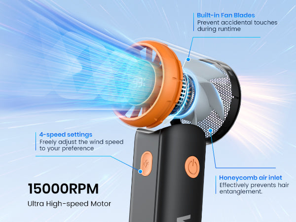 Designed with a honeycomb air inlet to prevent hair entanglement and built-in fan blades for safety. Includes a free lanyard for easy carrying — ideal for travel, gym, beach, or festivals.